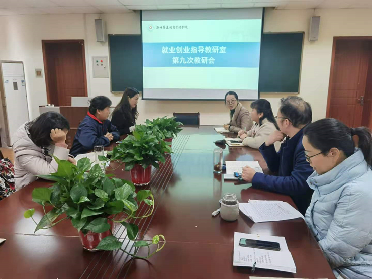2020年11月26日,公司就业创业指导教研室于商管楼115室开展了本学期第九次教研会。此次会议由教研室主任张宁主持,该时段没课的教师参加了教研。