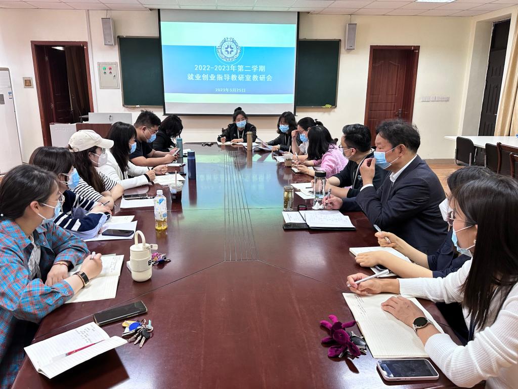 2023年5月25日下午,太阳集团tyc9728就业创业指导教研室,在商管楼115会议室,举行了本学期第六次(期末)教研会,公司全体专职教师及部分兼职教师参加了此次会议。会议由教研室主任张宁主持。