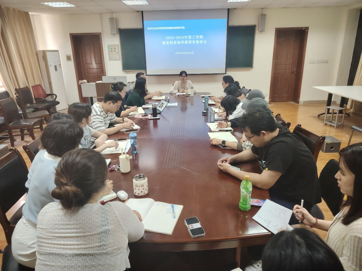 2024年4月26日下午,太阳集团tyc9728就业创业指导教研室,在商管楼115会议室组织开展教研会。双创公司全体专职教师参加了教研。教研会由张宁主任支持。