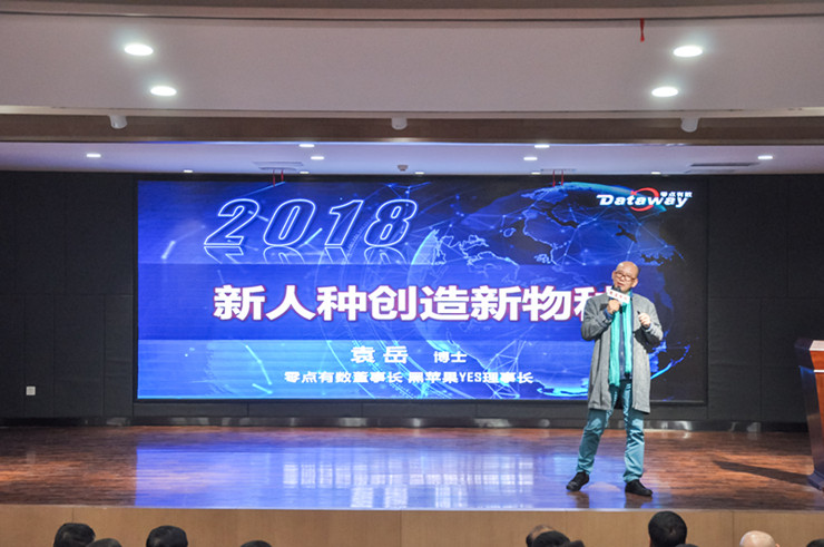 讲座结束,进入对话环节。在杨建国先生的主持下,袁岳博士,孙攀峰、袁宁、周延翟、魏斌、苗国军五位优秀员工,高允浩、李瑶两位员工代表上台落座,共言老员工创新创业话题。各位员工根据各自不同的创业实践经历,结合本次活动主题,对“新人种”、“新物种”观点提出关心的问题,袁岳博士对员工们的问题均一一给予专业解答。