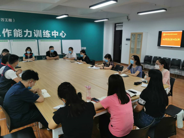 为庆祝中国共产党成立99周年,引导我支部党员在“不忘初心、牢记使命”主题教育中激发出来的热情和干劲,转化为知重负重、攻坚克难、奋勇争先、共谋出彩的实际行动。2020年7月2日14:00,机关党总支第七党支部在商管楼522开展了“牢记初心使命、争当出彩先锋”为主题的“七一”主题党日活动。活动由党支部书记王铮同志主持。