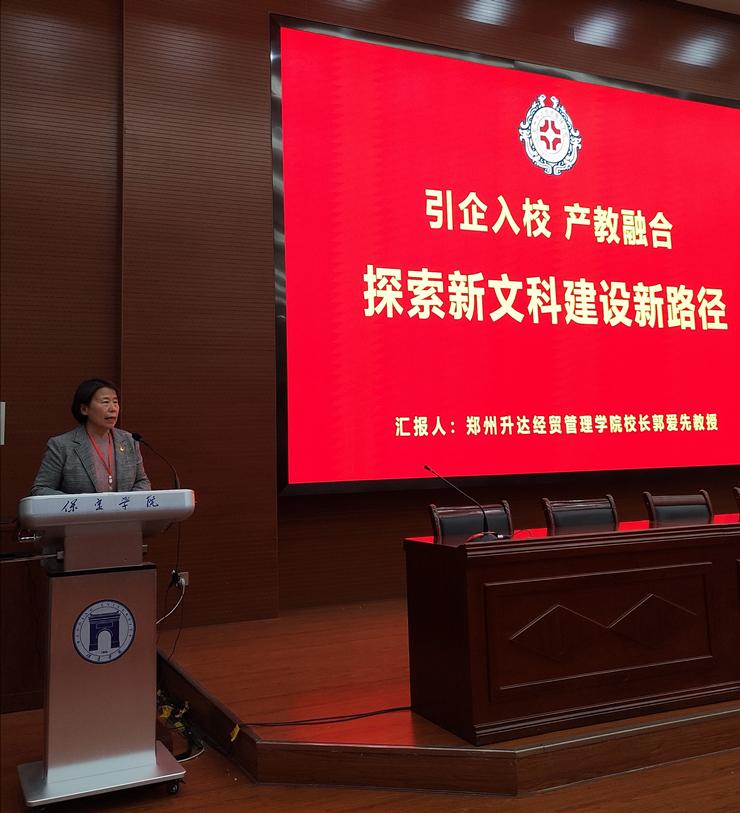 会议上,郭爱先董事长作了题为《引企入校、产教融合、探索新文科建设新路径》的主题报告。报告首先介绍了公司的办学情况、办学特色和办学成效;然后,通过公司转型发展的建设实践,验证了筑巢引凤,引企入校,实现产教融合,政校企三方合作育人,是民办文科高校进行新文科建设的有效路径。最后,介绍了公司取得的部分建设成果。整个报告清晰简洁,通过重点介绍公司在引企入校、产教融合方面的主要思路和经验做法,为推进新文科建设作出了有益的尝试,受到与会领导和专家的一致好评。
