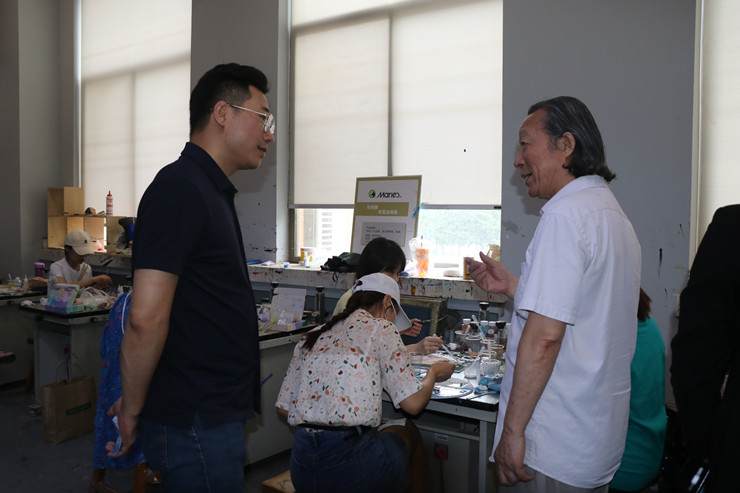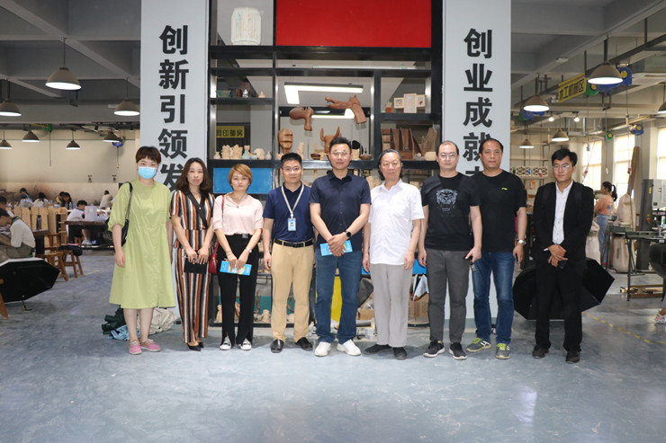 随后,在公司的引领下,企业来宾一行3人来到了艺术大楼进行参观交流。艺术公司书记韦杨建、副经理赵维平带领着企业来宾参观了艺术公司建党100周年的主题书画展、3D打印实验室以及木工坊实验室,参观期间大家也针对员工的作品进行了一些专业的交流。
