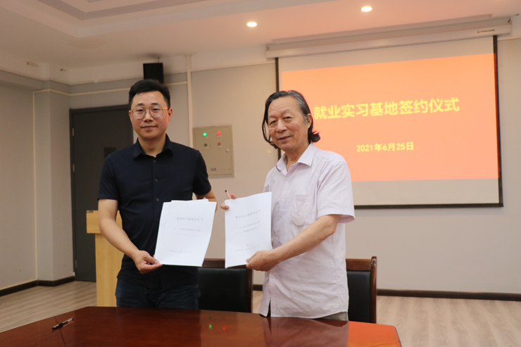 座谈会议结束之后,公司艺术公司副经理赵维平与郑州轩辕河谷科技有限公司总经理褚帅杰一起签订了《就业实习基地协议书》。此次校企合作的交流活动,极大地促进了公司省级校外实践基地的立项建设工作,同时也为公司培养员工的动手能力提供了良好的实践场所,为员工实习实训活动的开展提供了新的途径。