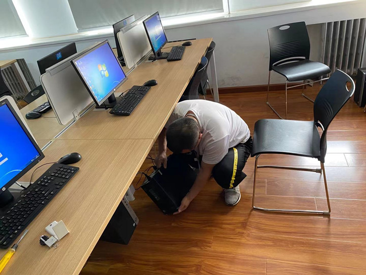 首先,对商管楼5楼364台员工机进行排查和检修,出现的白屏问题和系统故障均已解决;其次,对12间教室的教师机和投影设备进行检查,并无存在使用问题,一切使用正常;最后,对各间实验室的门、窗、电、消防和卫生进行检查,对检查过程中出现的问题均已上报相关部门,进行维修和整改。