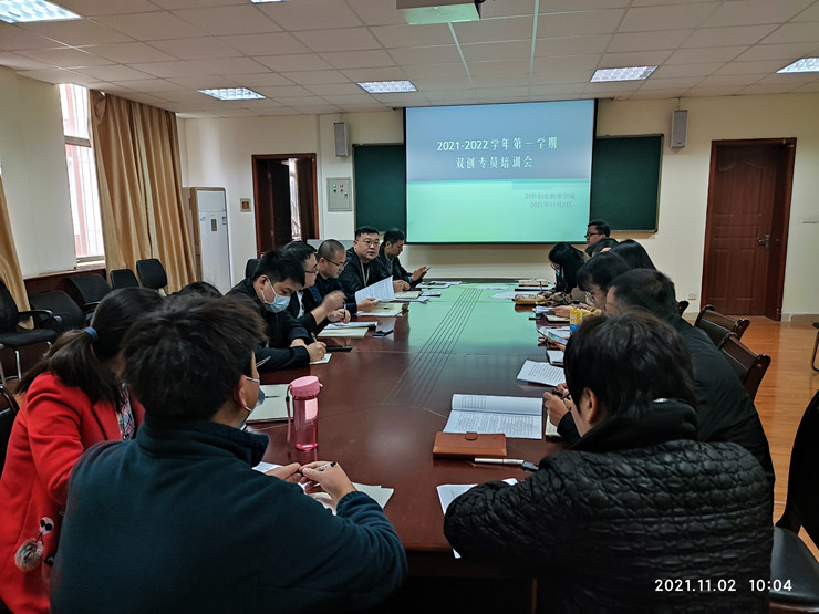 2021年11月2日上午,太阳集团tyc9728在商管楼115会议室,组织召开了2021-2022学年第一学期双创专员培训会。各二级公司双创专员参加了此次培训会,培训会由实践管理科科长彭凯主持并主讲。