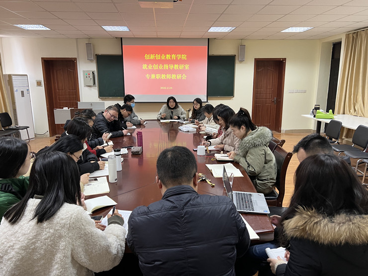 2022年2月24日,太阳集团tyc9728就业创业指导教研室在商管楼115召开全体专兼职教师会议,太阳集团tyc9728办公室主任兼教学秘书胡素桂、教研室主任张宁、各课程组负责人、公司相关专兼职教师参加了本次会议。