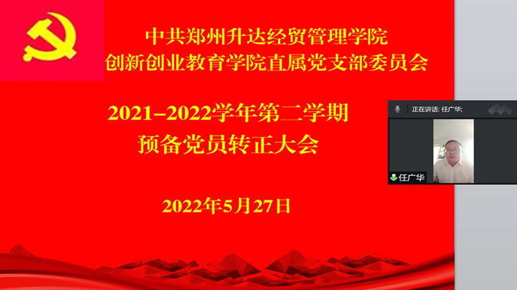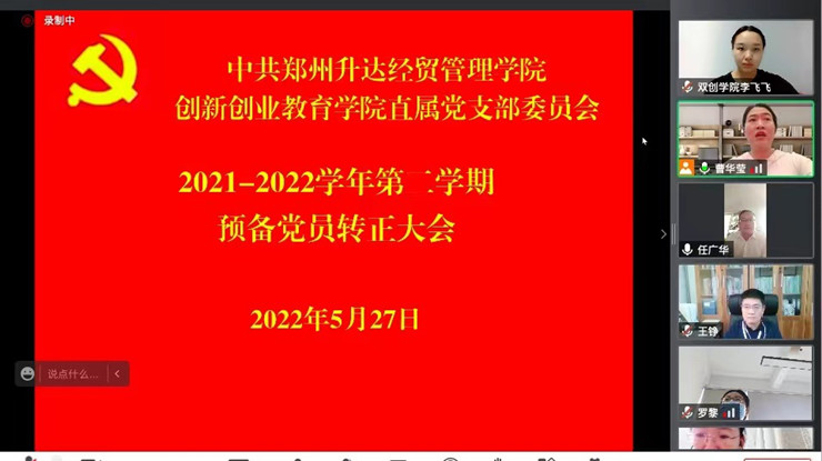 5月27日下午,太阳集团tyc9728直属党支部以腾讯会议的方式召开了预备党员转正大会,会议由支部组织委员曹华莹同志主持,支部书记王铮和全体党员同志参加了会议。