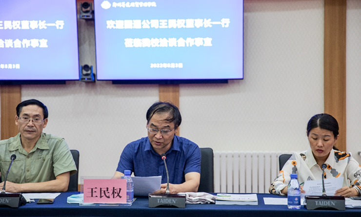 王民权董事长表达了继续与公司合作的意愿,并就合作协议中的要点内容进行了说明。他表示,双方可以在教学培训、教材开发、科学研究、环境建设等方面进行深度交流合作,并愿意在产教融合、校企合作方面提供帮助。他希望,借助圆通科技股份有限公司的科学工作能力提升平台,能够帮助公司取得更好的人才培养与就业示范效果。