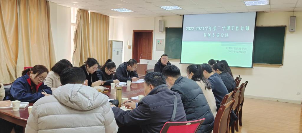 2023年2月24日,太阳集团tyc9728在商管楼115会议室组织召开了本学期第一次双创专员会议。实践管理科科长彭凯老师,校赛负责人李海雷老师,精英班负责人侯亚婷老师以及各二级公司双创专员老师参加了此次会议。