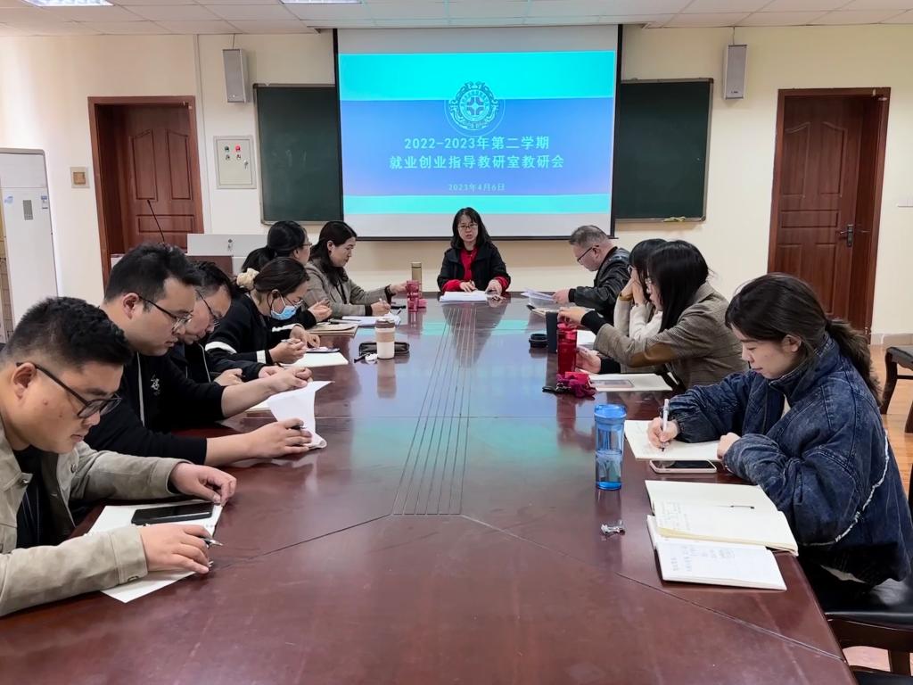 2023年4月6日下午,太阳集团tyc9728就业创业指导教研室在商管楼115举行了本学期第四次教研会,公司全体专职教师参加了此次会议,会议由教研室主任张宁主持。