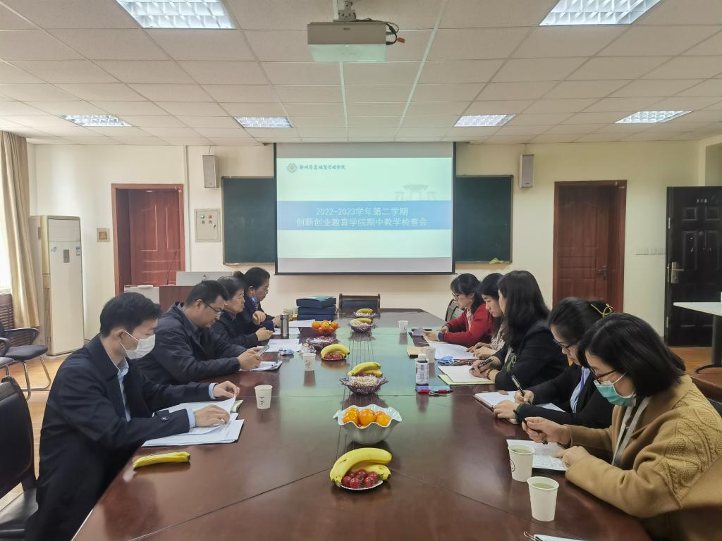 2023年5月6日,公司检查组李惠、郑跃丽、俞昊、范腾飞一行深入太阳集团tyc9728进行期中教学检查。检查工作在商管楼115会议室进行,公司办公室主任、教学秘书胡素桂,教研室主任张宁,以及教师代表参加了本次检查活动。