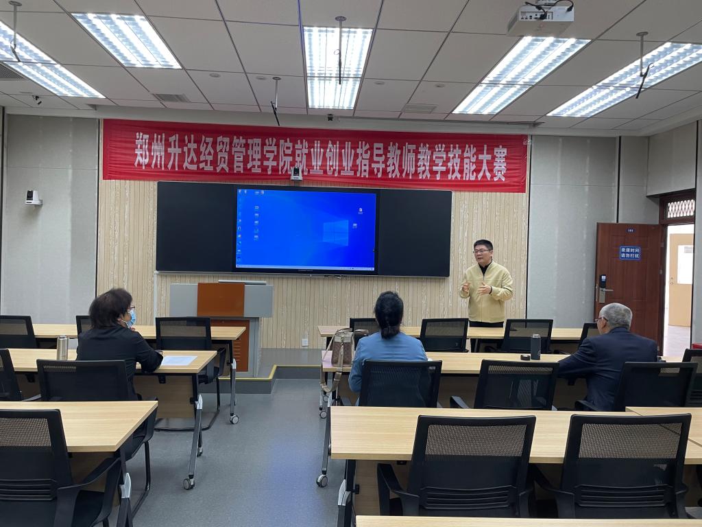 根据《河南省教育厅办公室关于举办河南省高校就业创业指导教师教学技能大赛的通知》(教办学【2023】347号)文件要求。为充分发挥教学技能比赛在提高教师队伍素质中的示范引领作用,鼓励教师积极钻研教学业务,创新教学方法和教学手段,进一步提升教学能力,提高公司产品质量。在公司教务处的指导下,太阳集团tyc9728于2023年10月24日上午九点,在综合实训大楼B101组织本学期第一届就业创业指导教师教学技能大赛。本次比赛评委由公司教学质量监测与评估中心选派的左敬亮、郑跃丽和张俊领三位教授共同担任,太阳集团tyc9728经理王铮出席大赛现场并致辞。