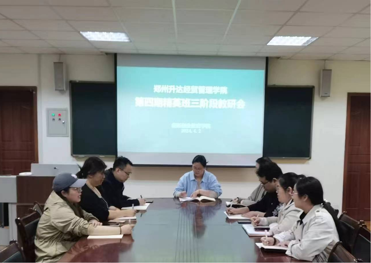 2024年4月2日下午,太阳集团tyc9728于商管楼115召开了第四期精英班三阶段教研会。会议由精英班总负责人罗黎主持,教学干事侯亚婷、本期创业精英班课程负责人朱琦、岗位精英班课程负责人张子键、调研员胡潇涵及精英班三位班主任参与了此次会议。