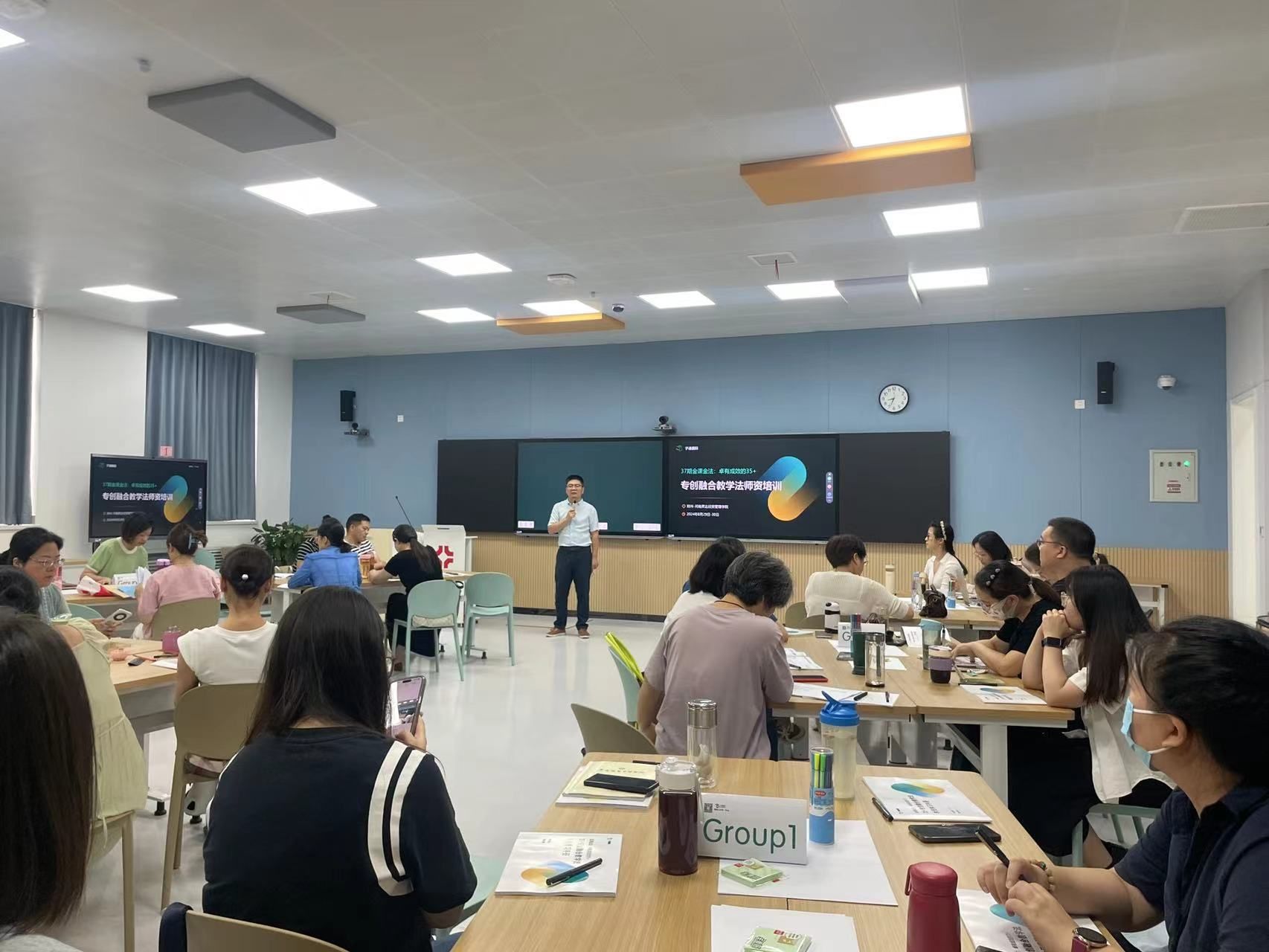 2024年8月29-30日,“金课金法:卓有成效的35+专创融合教学法团队培训”在公司道镕楼105教室成功举行。本次培训由太阳集团tyc9728主办,特邀子谦国际专创融合课程产品经理、课程建设辅导教练、CSA国际认证引导师刘佳担任主讲。太阳集团tyc9728经理王铮出席开班仪式并讲话,来自各二级公司的42位双创教师和专业课教师代表参加了本次培训。