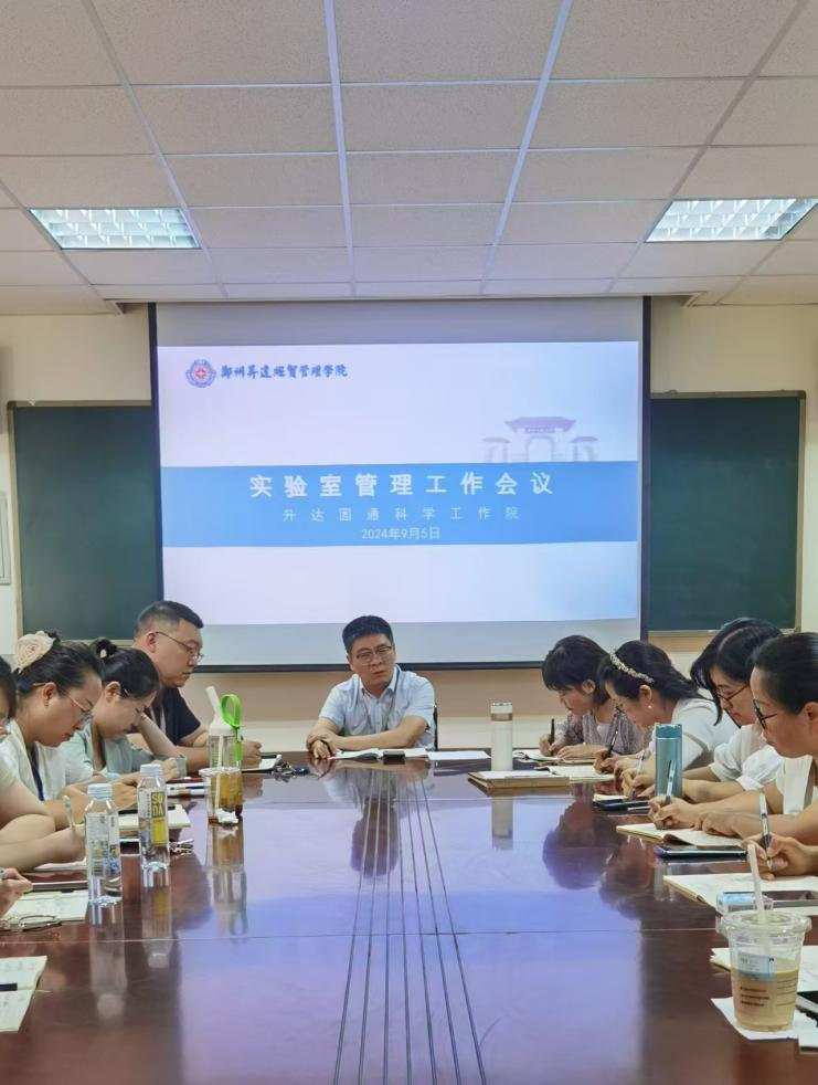 2024年9月5日下午,升达圆通科学工作院在商管楼115召开了2024-2025学年第一学期实验室管理工作会议。会议由圆通科学工作院经理王铮主持,双创公司教学秘书、教研室主任、实验室主任及任课教师参加了此次会议。