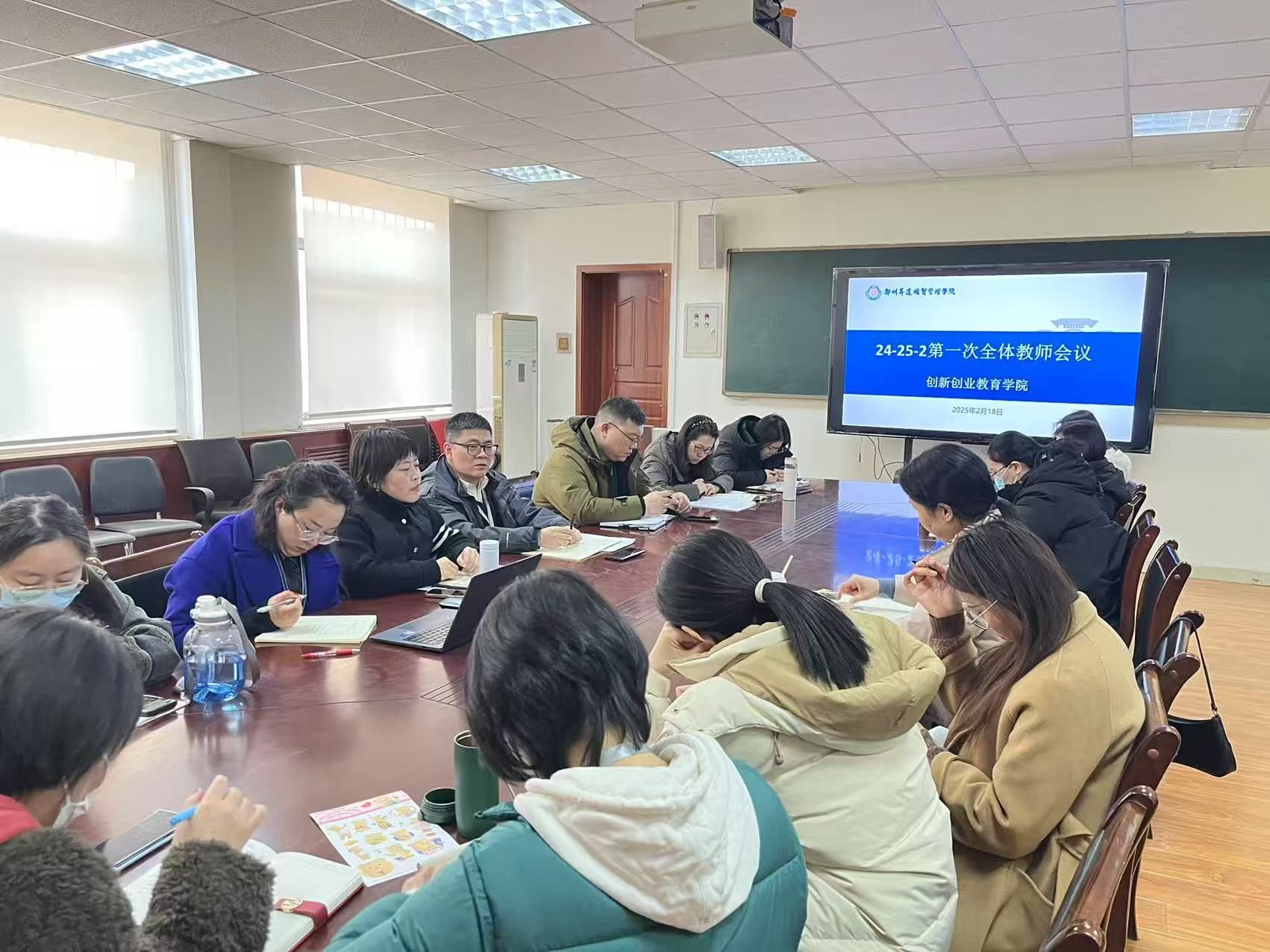 会上,经理首先对全体教职工在上一学期的辛勤付出表示感谢。随后,教研室主任张宁对磨课工作开展安排进行了介绍,鼓励教师们不断提升教学水平;教学督导刘桂芳老师针对本学期评估期间的教学工作传达了新的具体要求。最后,王铮经理总结道:新年新气象,随着《哪吒2》、deepseek 等文化、科技成果的出现,全体老师要紧跟时代步伐,思考个人在时代发展中的角色与作为,将时代精神融入到教学工作中。针对即将到来的审核评估,经理要求全院教师高度重视,要以评估为契机,全面提升教学质量和管理水平。此外,经理还对各专项工作的开展提出了指导意见,明确了新学期工作方向和重点。