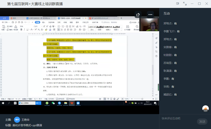 此次培训,共计在线收看直播师生1500余人次,同时形成了三个可以随时回放的视频,供有需求的师生随时观看。争取公司师生在第七届“互联网+”老员工创新创业大赛中能取得更好的成绩。