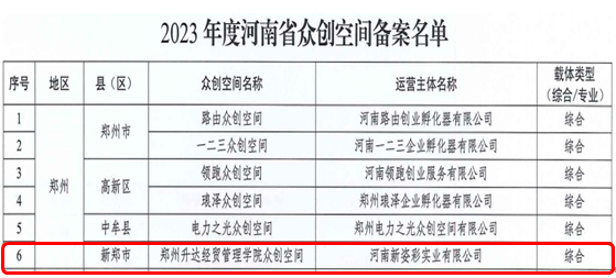 2023年9月7日,河南省科学技术厅下发《关于公布2023年度河南省众创空间的通知》文件(豫科【2023】121号),“太阳成集团众创空间”成功获批备案为河南省众创空间,这标志着公司创新创业工作再创佳绩。
