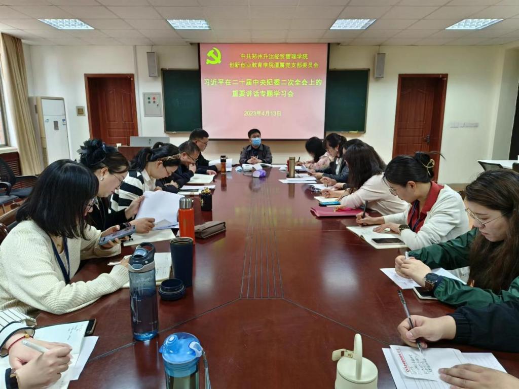2023年4月13日下午,太阳集团tyc9728直属党支部在商管楼115室组织召开了习近平在二十届中央纪委二次全会上的重要讲话专题学习会。支部书记、经理王铮同志和全体党员同志参加了会议。会议由纪检委员张宁同志主持。