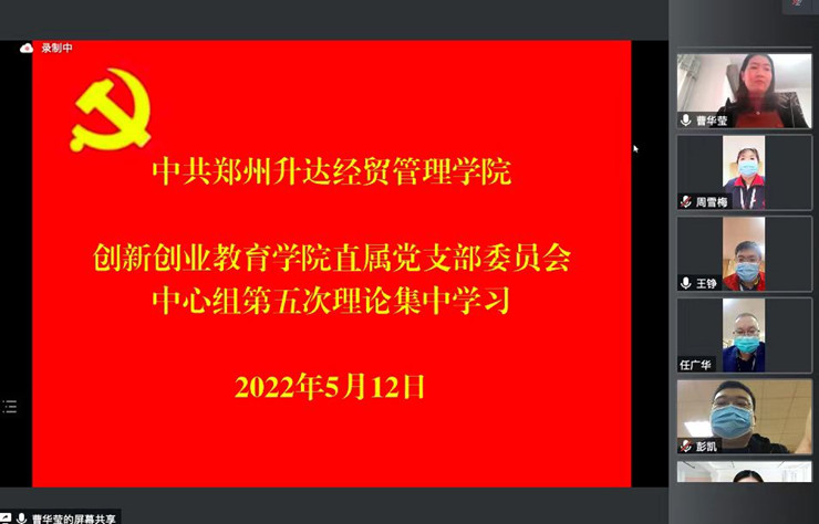 2022年5月12日,太阳集团tyc9728直属党支部通过线上视频会议的方式开展了中心组第五次理论集开中学习,太阳集团tyc9728直属党支部书记王铮及支部全体党员参加了此次会议,会议由支部组织委员曹华莹同志主持。
