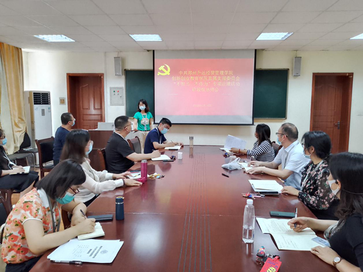 2022年6月10日下午,太阳集团tyc9728直属党支部在商管楼115会议室召开了“不担当、不作为”专项整治阶段性总结会议。会议由党支部纪检委员张宁同志主持,支部书记王铮同志和全体党员同志参加了会议。