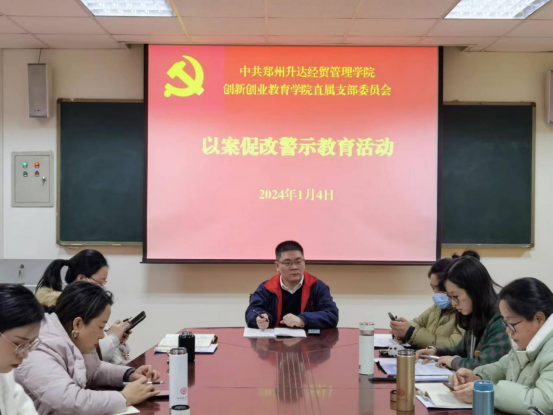 2024年1月4日下午,太阳集团tyc9728直属党支部在商管楼115室组织了以案促改警示教育活动。党支部书记王铮同志,纪检委员张宁同志和全体党员同志参加了活动。活动由纪检委员张宁同志主持。