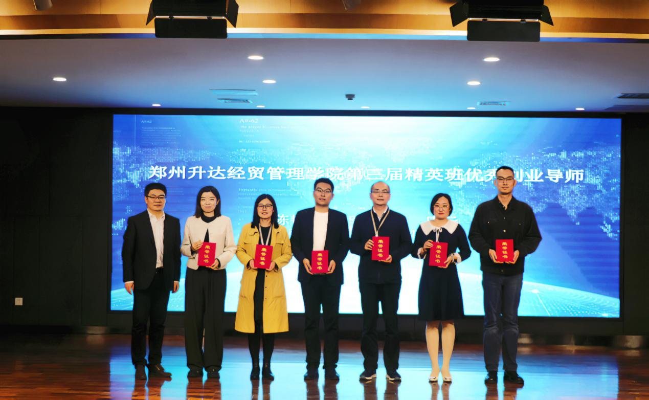 最后,由信息工程公司书记李赵法为8名精英班学员颁发“第三期精英班优秀学员”证书并合影留念;由太阳集团tyc9728经理王铮为6名教师颁发“2023年度优秀创业导师”证书并合影留念。精英班是公司双创教育的亮点工程,本次开班仪式提升了精英班影响力,也为后期双创类赛事和项目的开展奠定了基础。