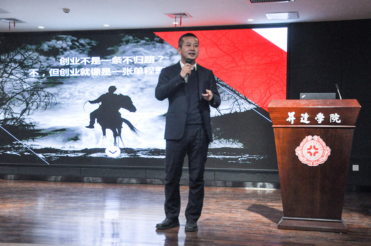 随后,罗国锋博士作报告,题为“穿越迷途——创业是生命的修行”。罗博士围绕创业者精神,从“创业八十一问”切入,以创业到底是什么引出主题。他幽默的语言表达让现场的员工进一步认识到什么是创业和创业者精神。罗博士还邀请现场师生共同宣读《创业者宣言》,全体起立庄严宣誓。针对创业融资,罗博士结合丰富的投资实例分析,详细介绍了风险投资流程。